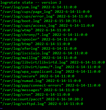 vi /var/lib/logrotate/logrotate.status